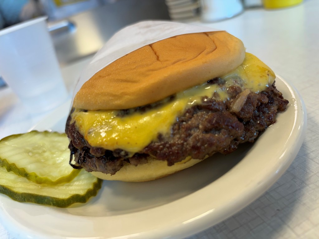 According to Edie, the burger is a classic griddle burger with a good crisp.